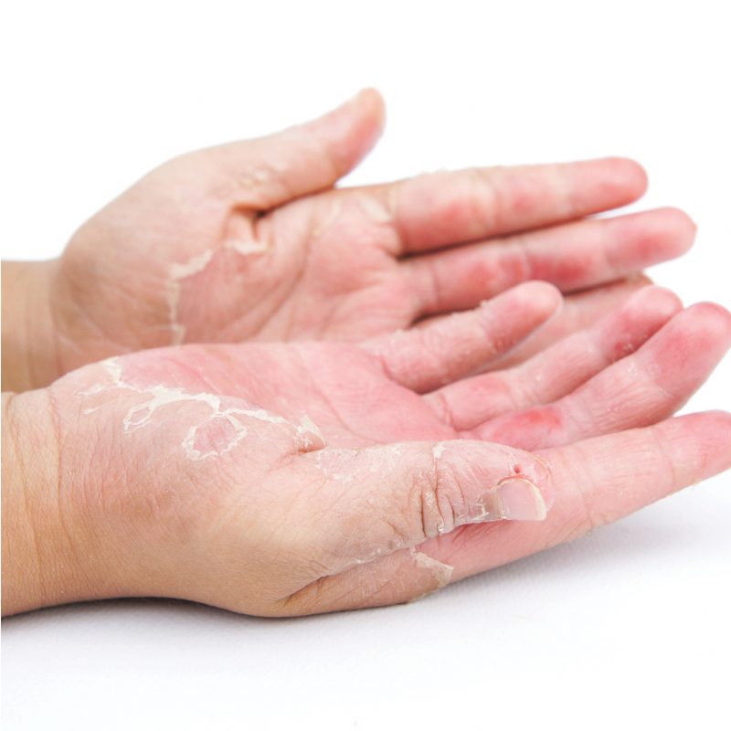 Contact dermatitis is a reaction that appears when the skin comes in contact with an irritant or an allergen. Symptoms can include a rash, blisters, itching, and burning.